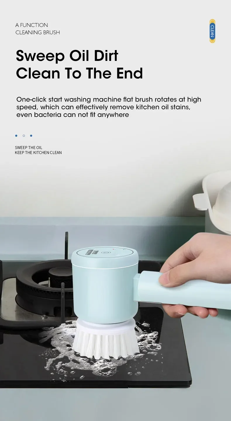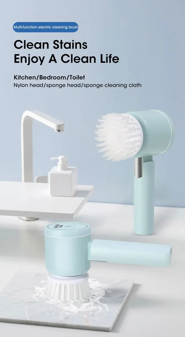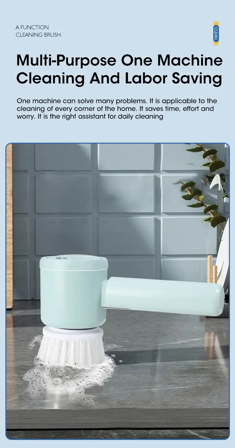 Purificador giratório elétrico, escova de limpeza sem fio para banheiro, purificador elétrico com 5 cabeças de escova substituíveis, escova de limpeza elétrica