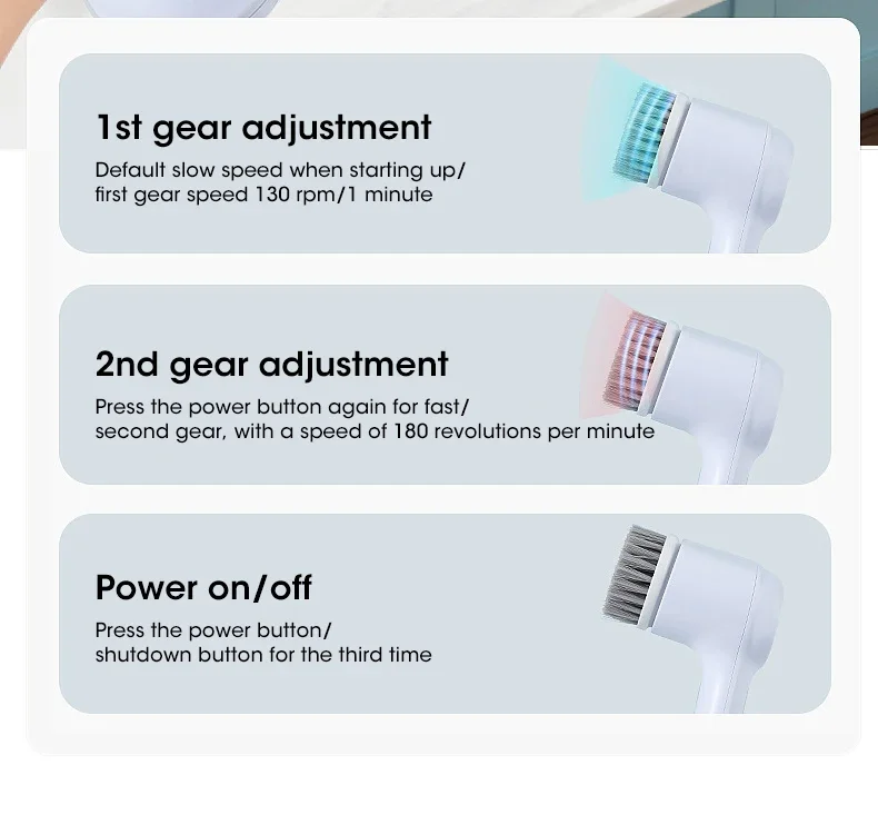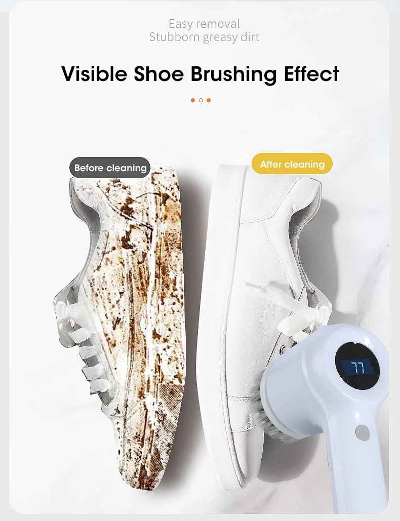 Acessórios do produto: cabeça de escova de náilon, cabeça de escova de esponja, cabeça de escova de caxemira, cabo USB, gancho, adesivo dupla face.