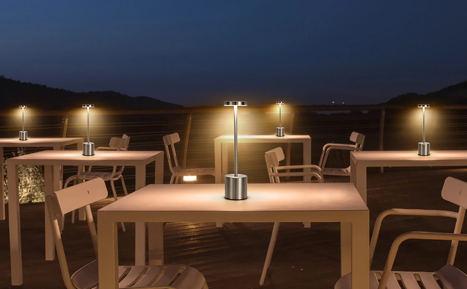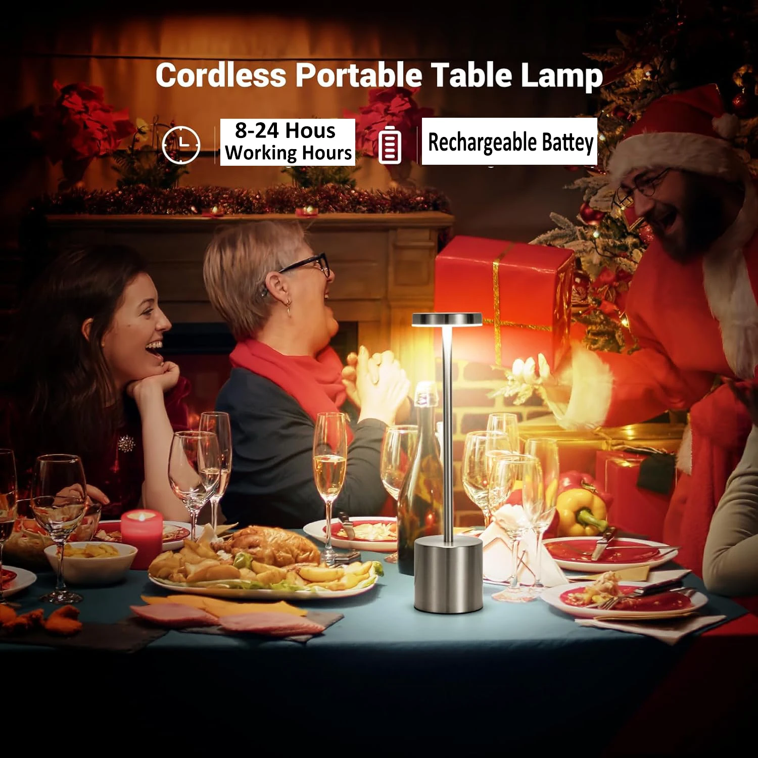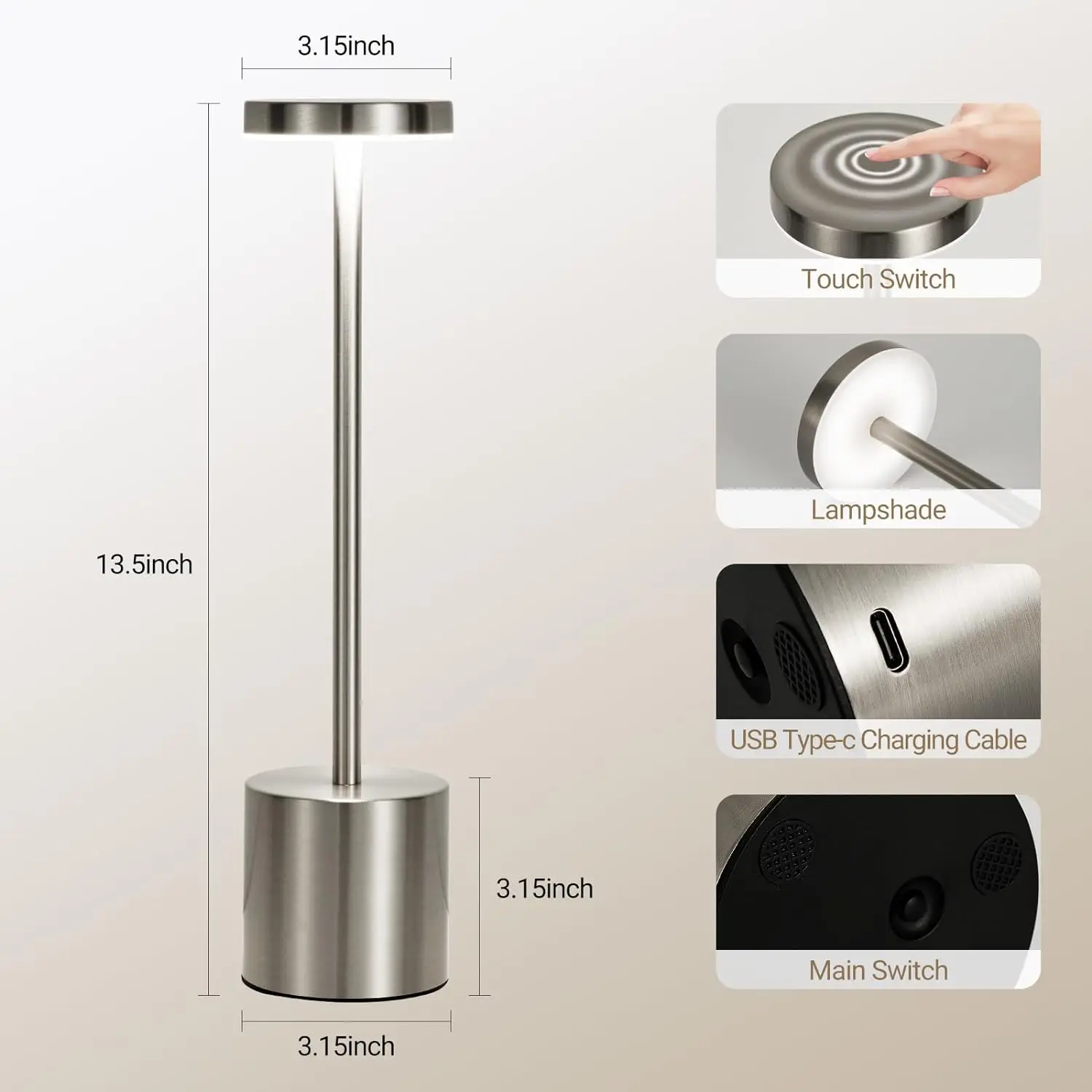 Design moderno: o candeeiro de mesa LED sem fio para interior e exterior impressiona pelo seu visual estiloso e chama a atenção sob os candeeiros de mesa LED.A bela aparência em forma de haltere, uma caixa de metal altamente polido tornam o abajur vintage super elegante, clássico e requintado.