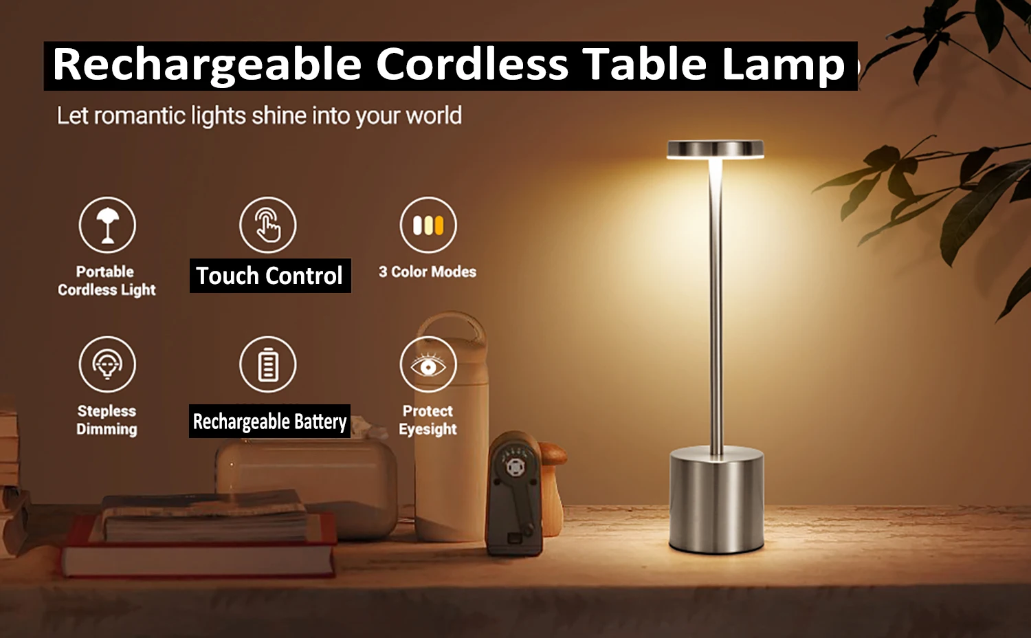 • Recarregável:Este candeeiro de mesa de estilo moderno é recarregável, proporcionando flexibilidade e comodidade no seu uso.